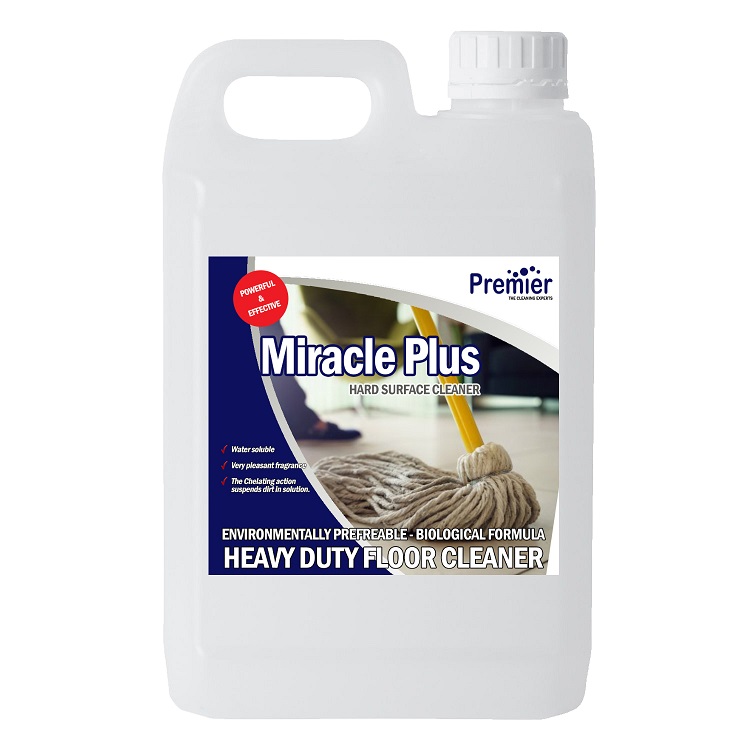 Miracle Plus is an extremely versatile heavy duty floor cleaner that easily removes dirt, grime, grease, oils, waxes, dyes, inks, fungi, algae, nicotine, traffic film and other deposits from all washable surfaces, including glass. It is ideal for cleaning stainless steel and will remove rubber marks from hard surfaces.