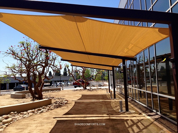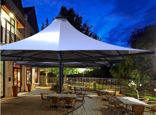 Tensile fabric is a very versatile architectural medium. The fabric forms part of the structure which means that you can achieve a large area of coverage for relatively less weight than if using conventional construction methods. This is in fact the reason why tensile fabric was chosen for the Millennium Dome (now the O2). Architectural shapes can be designed to provide permanent cover even over the most awkward areas or to meet the most creatively demanding brief.
