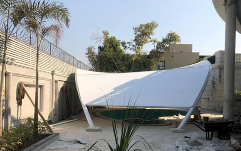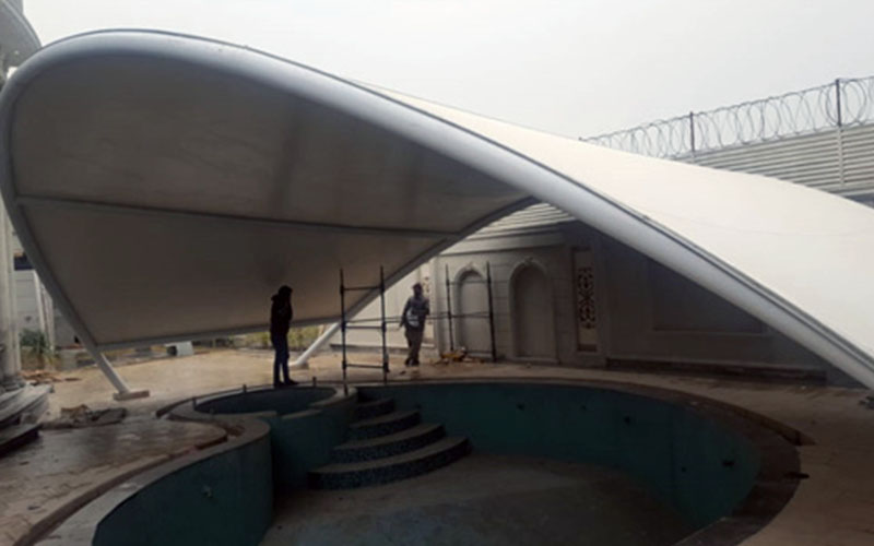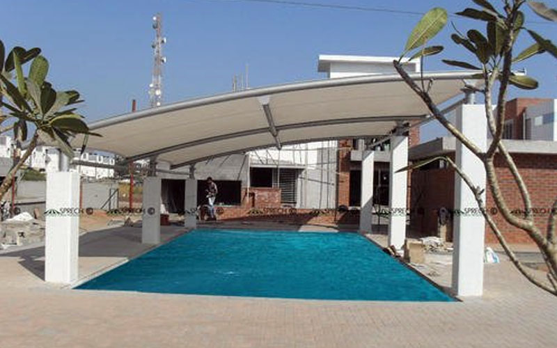 We offer best-quality Shades for Swimming Pool Covering in the market. The swimming pool can be covered easily with different style of tensile fabric structures as well as fully cantilever with the help of our quality tensile fabric coverings.